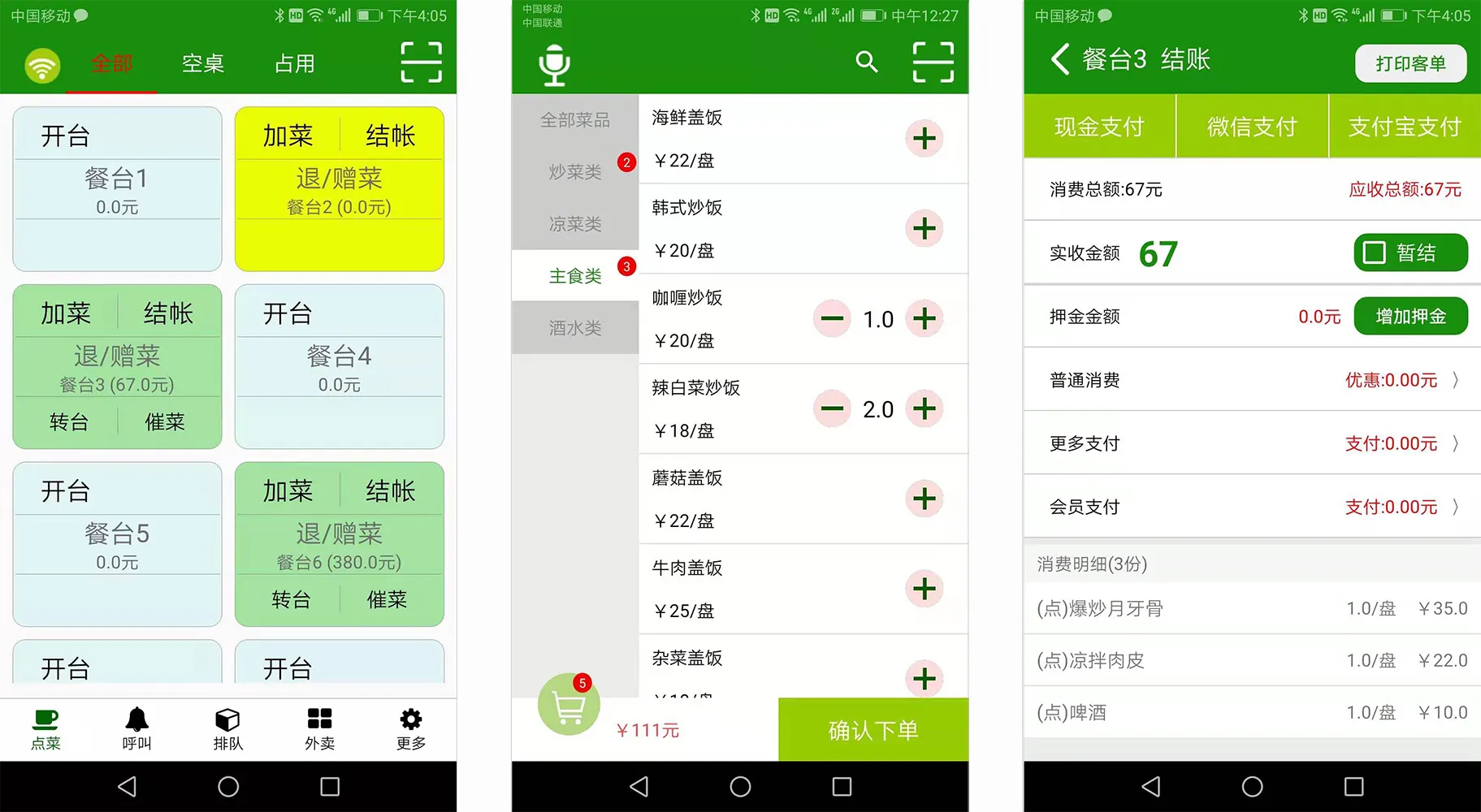 系统支持触屏一体机点餐,中餐POS模式 适合正餐、酒楼、茶楼、火锅、农家乐、