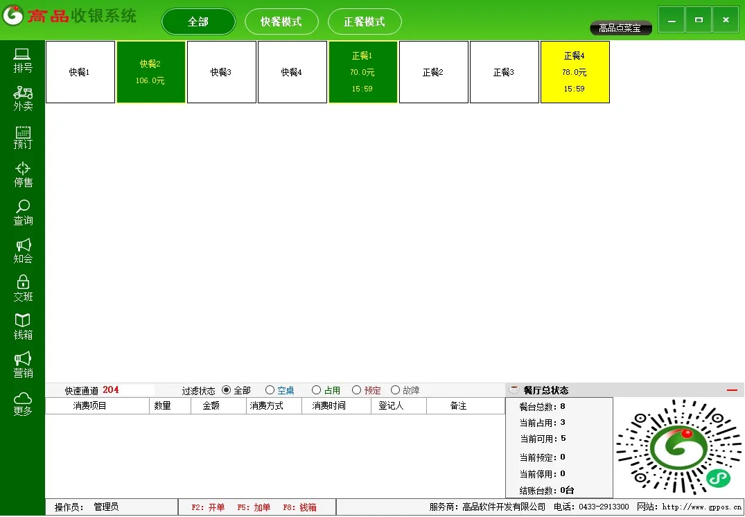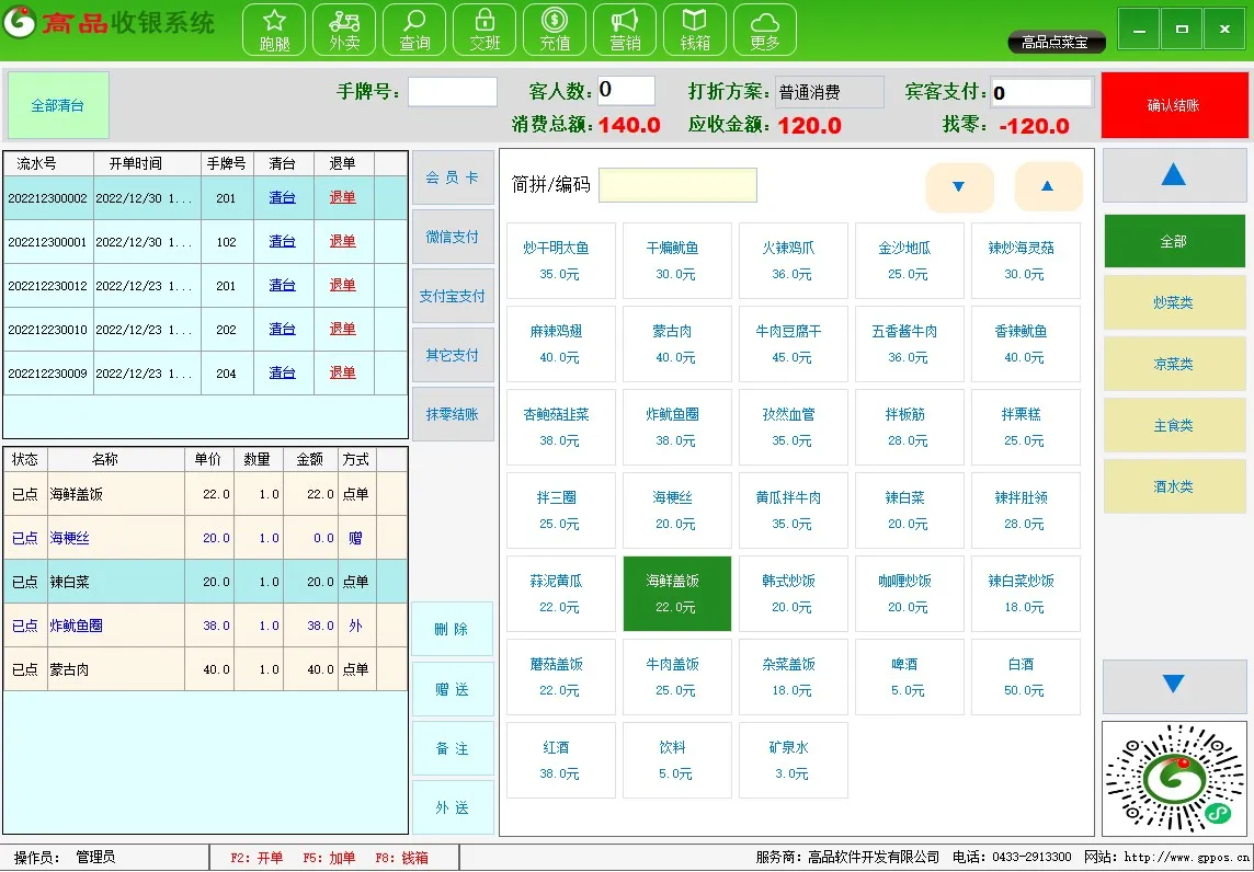 系统支持触屏一体机点餐,中餐POS模式 适合正餐、酒楼、茶楼、火锅、农家乐、